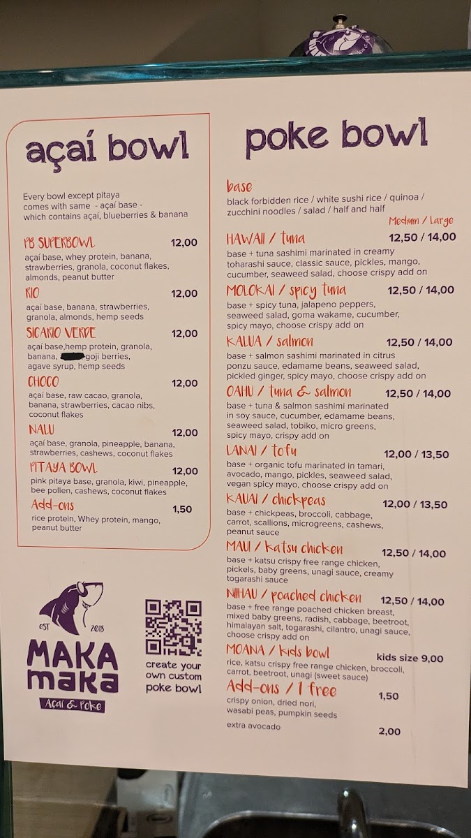 “ I had a wonderful experience at Maka Maka Acai & Poke! The food was absolutely delicious and fresh, and the staff was incredibly kind and attentive. They even offered a few pieces of avocado for my 10-month-old baby free of charge, which was such a thoughtful gesture. Highly recommend this place for both the food and the amazing service! ”
